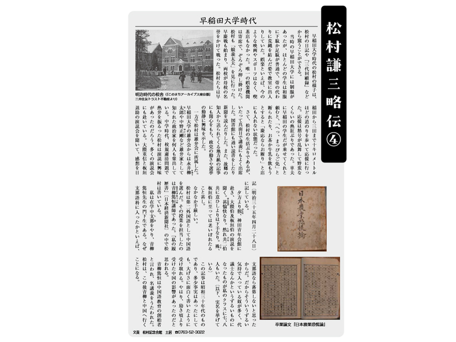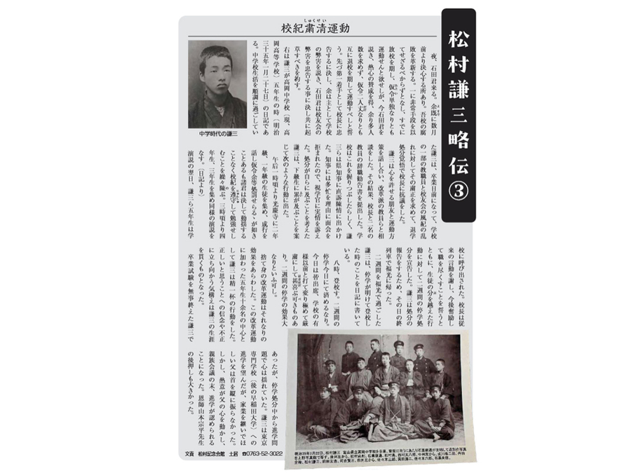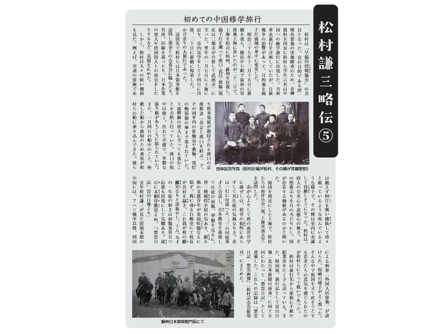 松村謙三先生の幼少期から青年期の経験など、後の日中友好の偉業に繋がる基礎となったエピソードなどを毎回、ご紹介しています。